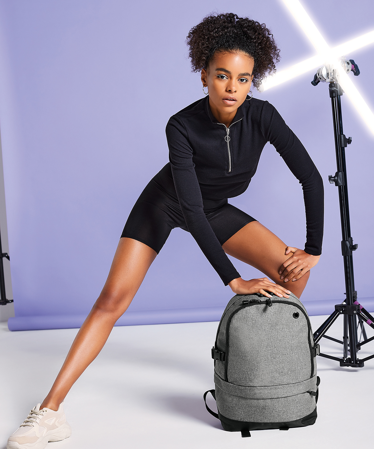 TearAway label for ease of rebranding. Water-resistant fabric. Dual compartment design. Laptop compatible up to 15.6″. Padded laptop compartment. Media pocket and headphone port. Padded adjustable shoulder straps. Wet pocket. Compression straps. Padded back panel. Organiser section. Elasticated bottle loop. Metal ventilation eyelets. Grab handle. Reach certified.
