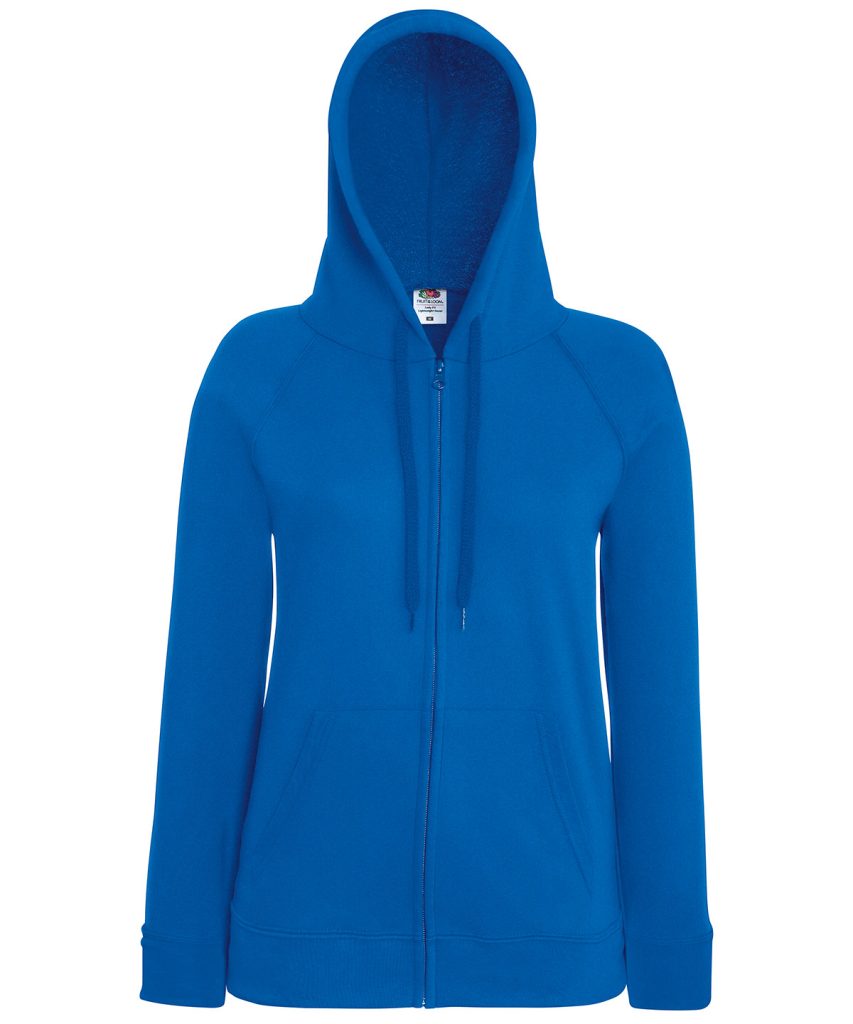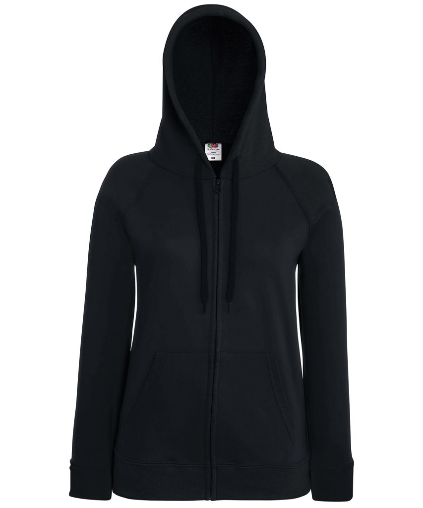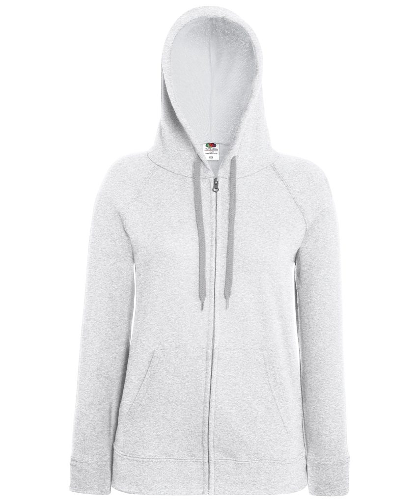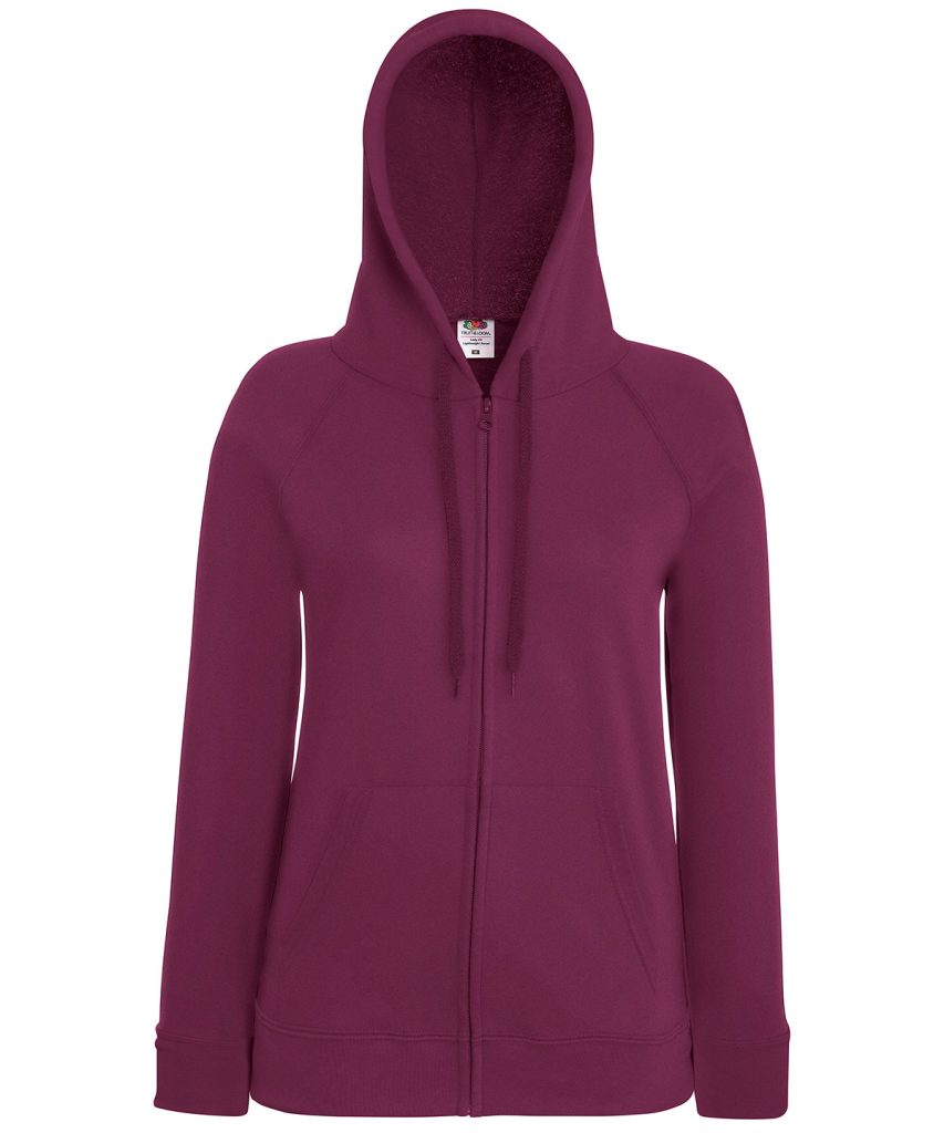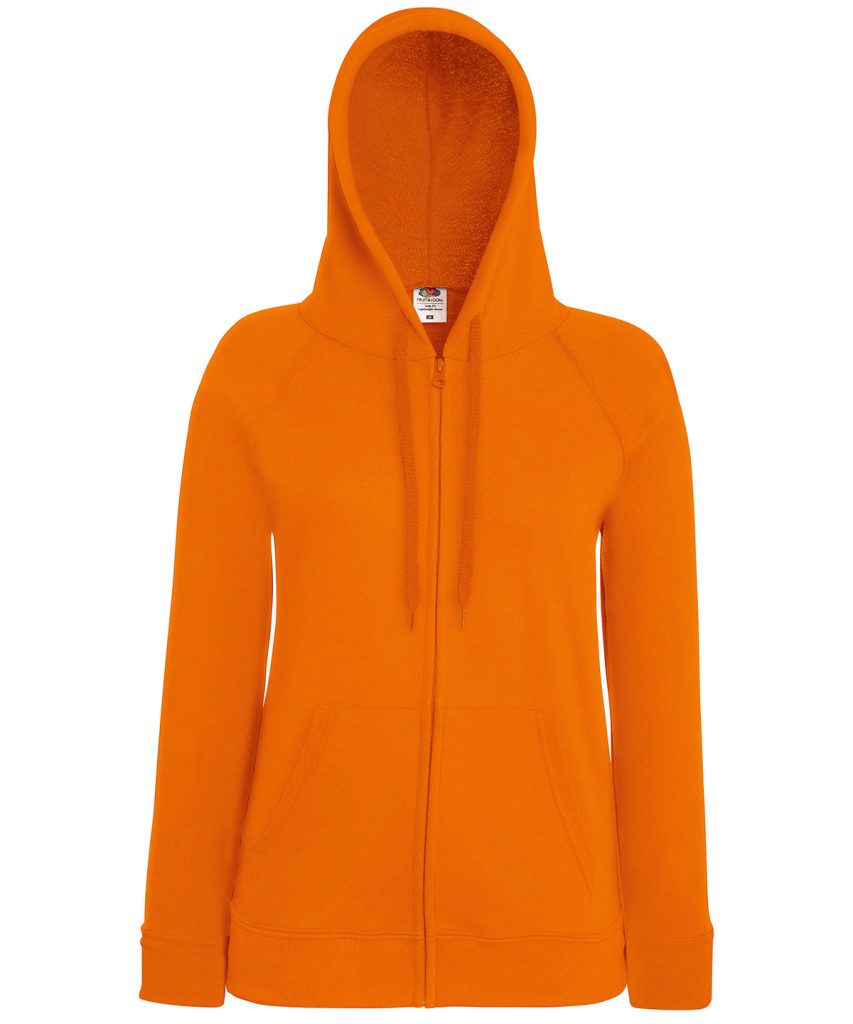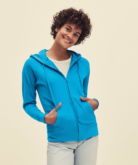 Made using unbrushed fleece and featuring shaped side seams for a feminine fit, the women’s lightweight hooded sweat jacket is perfect for layering, with a 100% cotton face and covered self-coloured plastic zip ensuring enhanced printing and embroidery results. Including raglan sleeves, two front pockets and a hood with self-coloured flat drawcord, Fruit’s women’s lightweight hooded sweat jacket is available in a wide range of colours.