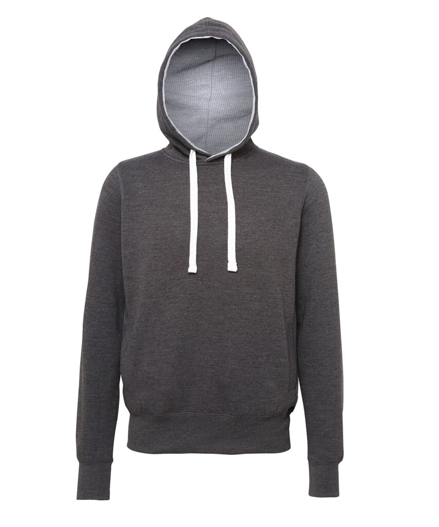 Overlock stitching detail throughout. Double fabric hood with Heather Grey waffle fabric inner. Chunky white flat lace drawcords. Deep ribbed cuffs and hem. Soft cotton faced fabric creates ideal printing surface. Simple tear out label makes it prefect for rebranding. Side panels for stylish fit. Side pockets. Worldwide Responsible Accredited Production (WRAP) certified production. Pull over Hoodie. Brushed inner fleece. WRAP certified. SEDEX certified. Vegan certified.